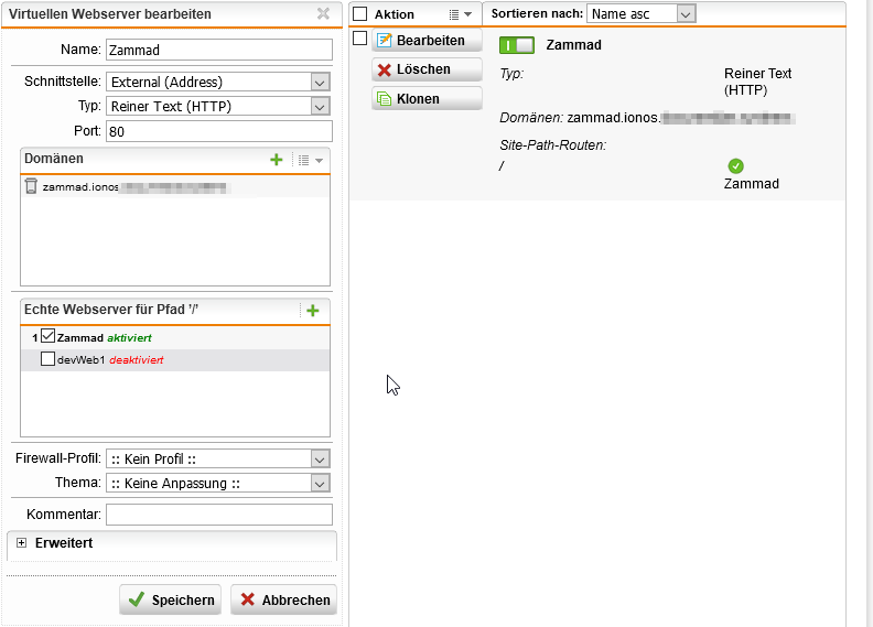 Als Fehler kommt ein 403er und im Log steht : 2019:02:19-16:23:10 router httpd[30956]: [url_hardening:error] [pid 30956:tid 2921921392] [client IP] Hostname in HTTP request (zammad) does not match the server name (zammad.ionos.URL)