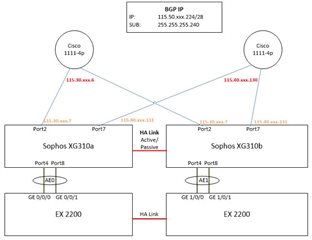 I'm setting up a new XG310 (v17.5.1) in HA (Active-Passive). My ISP has provided dual links and will be setting up BGP (Active-Passive) to fail over the Internet