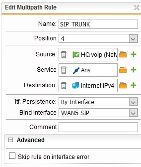 4. Make a Multipath rule for the VoIP traffic binding it to WAN5.  Follow that with another rule binding the same Traffic Selector to WAN4.