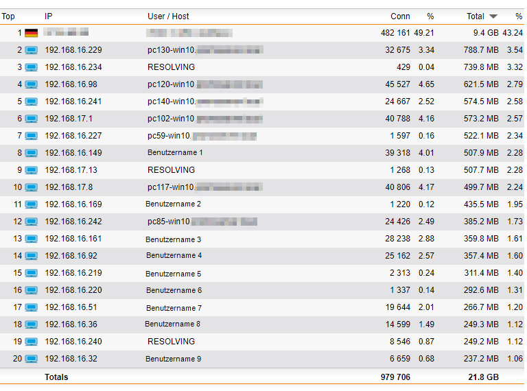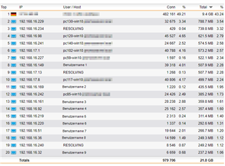 Die Zuordnung eines angezeigten Benutzers (Benutzername 1-9) zur jeweils angezeigten IP Adresse stimmt definitiv nicht überein. Dies ist dann etwas verwirrend. Wenn ein Hostname angezeigt wird, ist dies korrekt. Im Executive Report wird dies auch so angezeigt.
