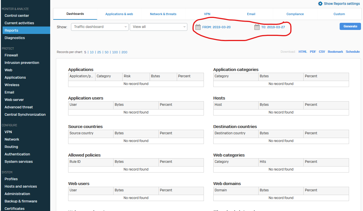 From Reports | Compliance | Events | System Events