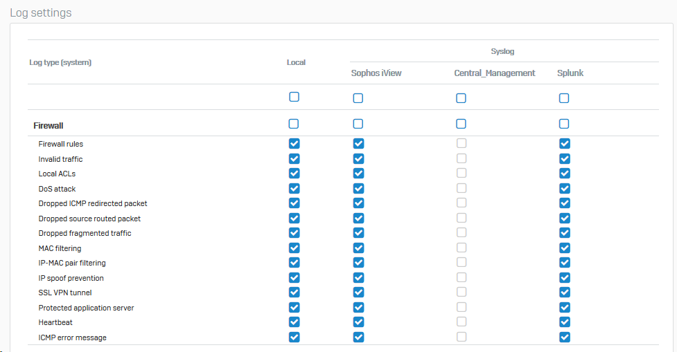 Here the screen shot from System Services | Log Settings