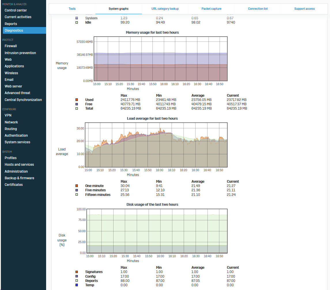 Here the capture from Diagnostic | Reports Graphs | Disk usage of the last two hours