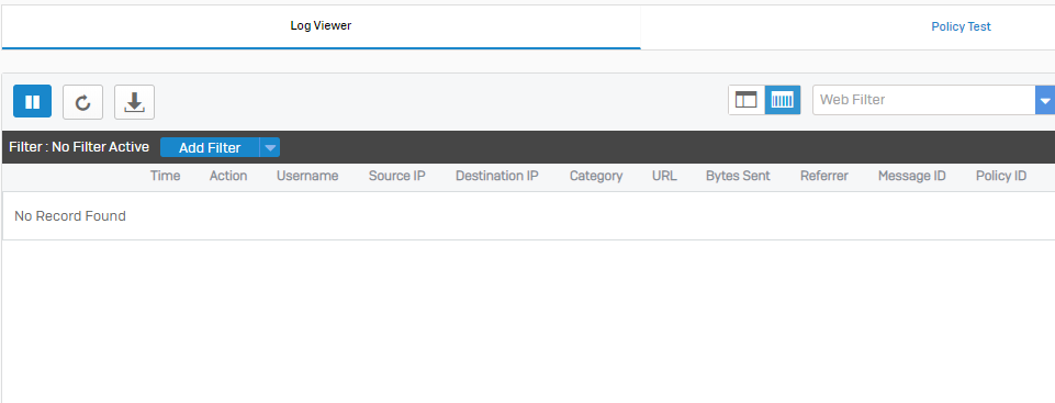 Hi guys, i have problem with the log viewer, the web filter show the message "No record Found".