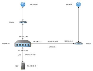 Do you intend the incommig traffic via  VPN ISP > Pfsense > P2Plink >XG>NAS ? or do you wish the traffic to reach from ISP orange > Live BOX > XG > NAS ?