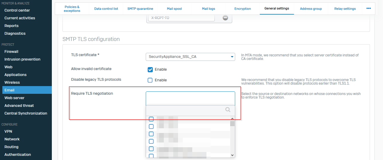 i would like to activate SMTP TLS for all connections. But im not able to choose "Any" in "Require TLS negotiation" field. (SFOS 17.5.3 MR-3)