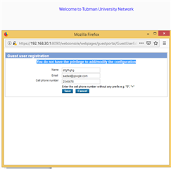 2. I can't created new guest user. if the try creating a guest user the is the messaged I receive, You do not have the privilege to add/modify the configuration