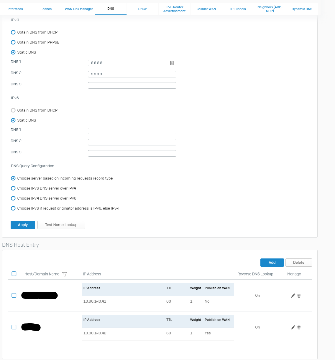 I have created a DNS Host Entry for the server in the XG Firewall, but if I try to access the server by name in the DMZ, it doesn't work.