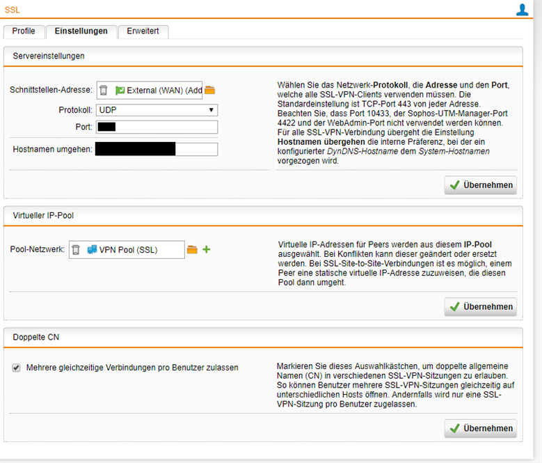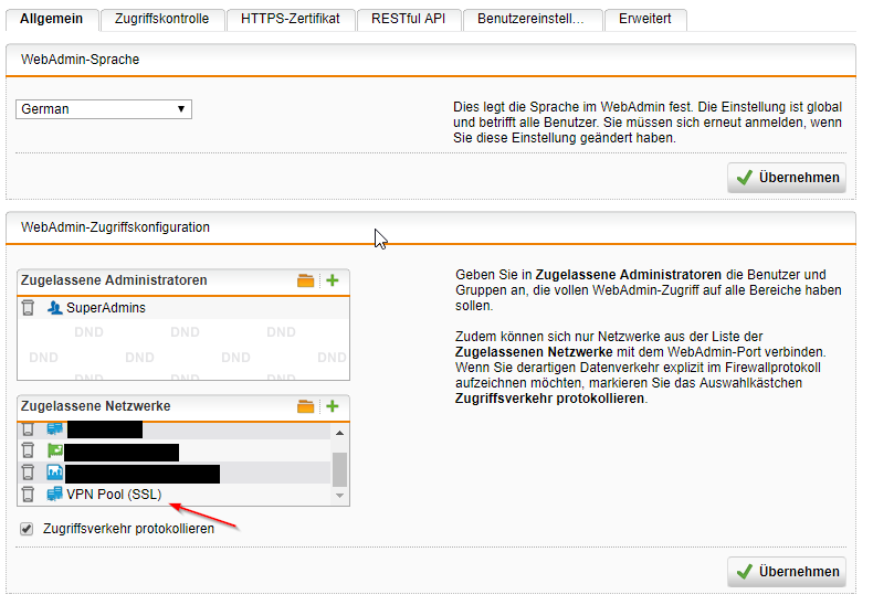 ich bin am Verzweifeln. Ich bekomme nach dem Herstellen einer SSL-VPN Verbindung keinen Zugriff auf mein Webadmin der SG.