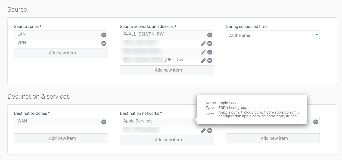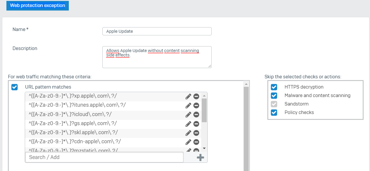 I have already set exceptions in the web policy, and put all the URLs from the Apple article into a firewall rule where the IPS is disabled.https://support.apple.com/de-de/HT201999