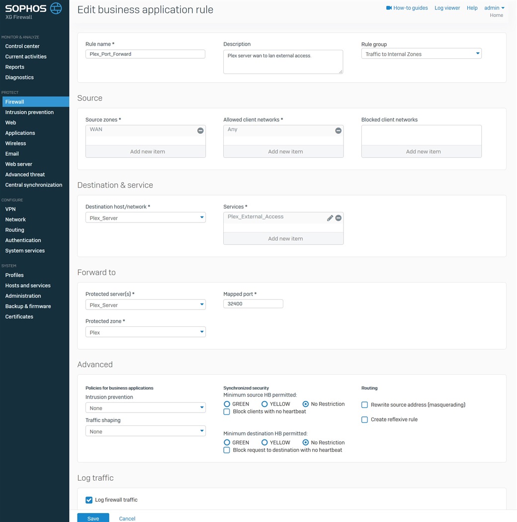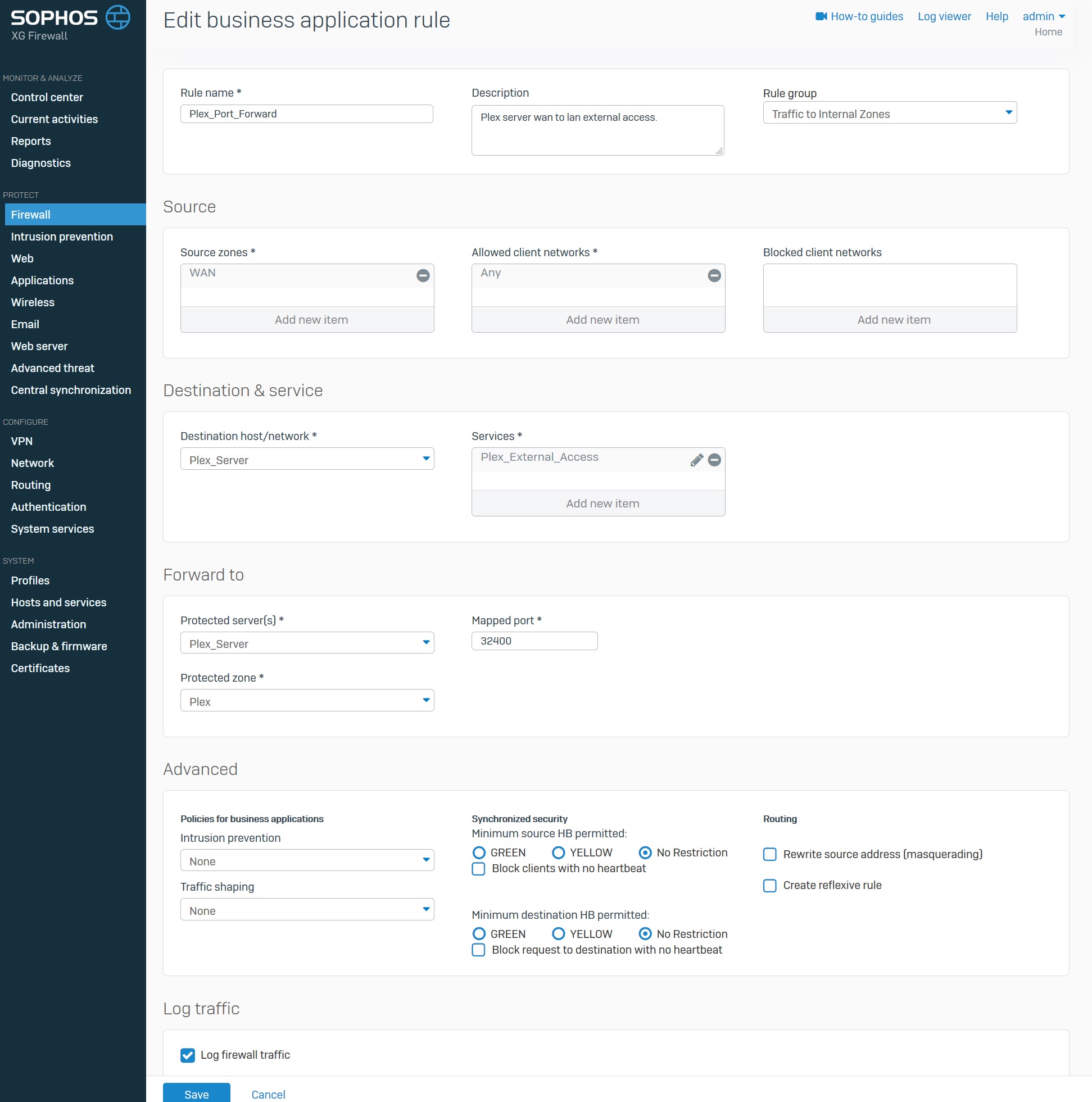 Has anyone had success configuring Sophos XG to allow Plex remote access?