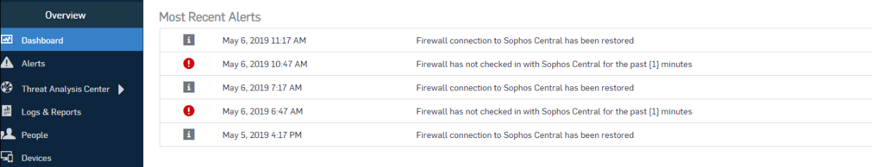 Sophos is investigating reports of some Central customers receiving false positive XG Firewall connection alerts on their dashboard, but upon further investigation on the firewall no connection issues are actually experienced.