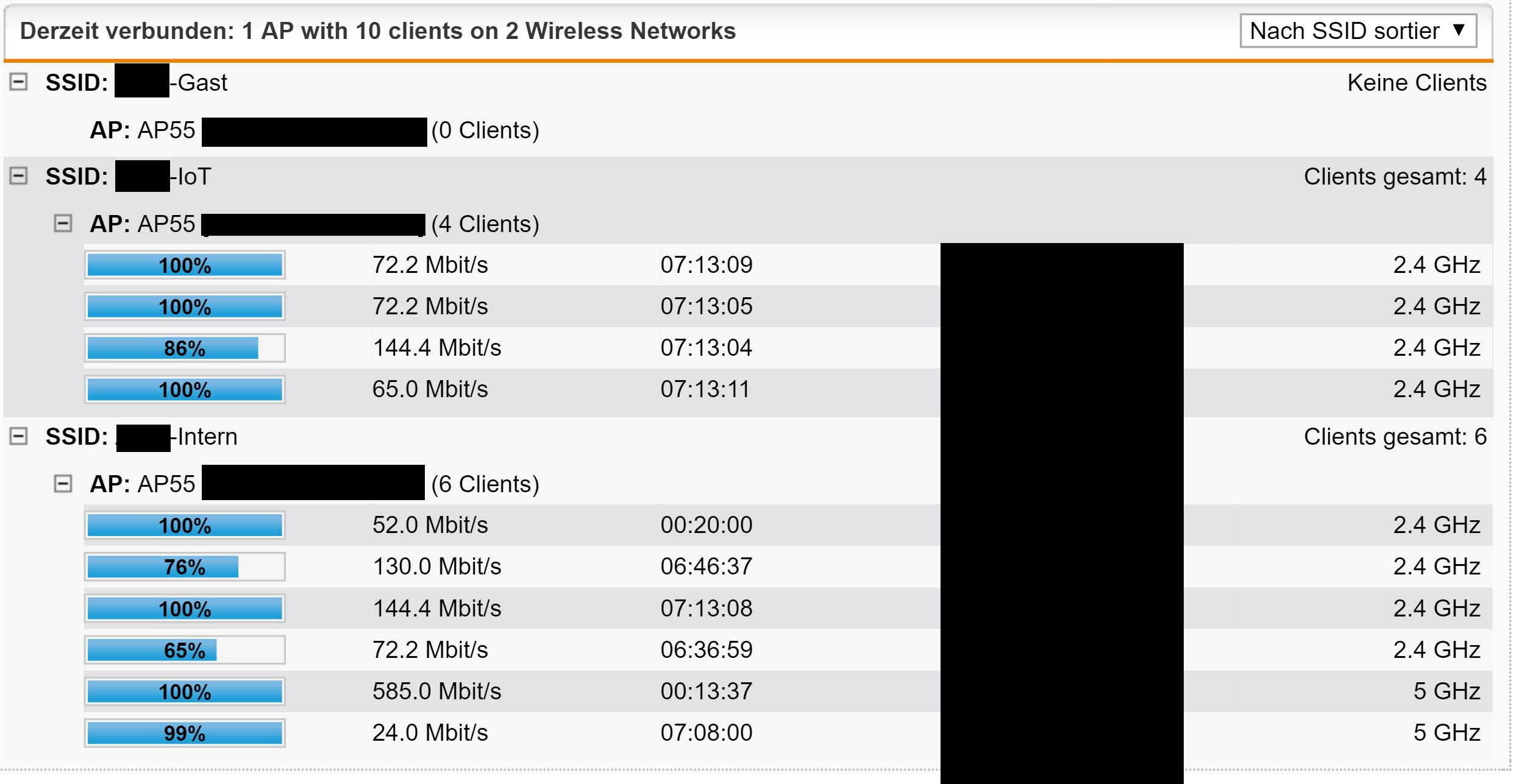 Meine Geräte bekommen bei 802.11ac maximal 400mbit/s. Ich weiß, dass das Surface Pro 5 das ich verwende eine höhere Übertragungsgeschwindigkeit schafft, mit dem Test an anderen Access Points.