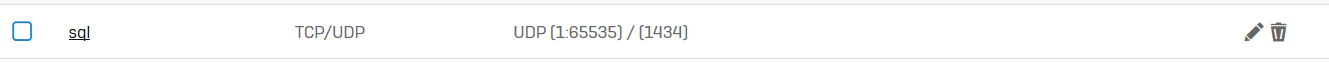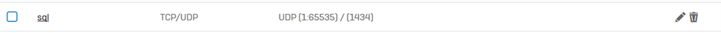 I want to open port UDP 1434 for the SQL browser, I tried all possible combinations but it didn't work, I was able to open TCP port 1433 by using WAF, but WAF works only for TCP, no UDP,