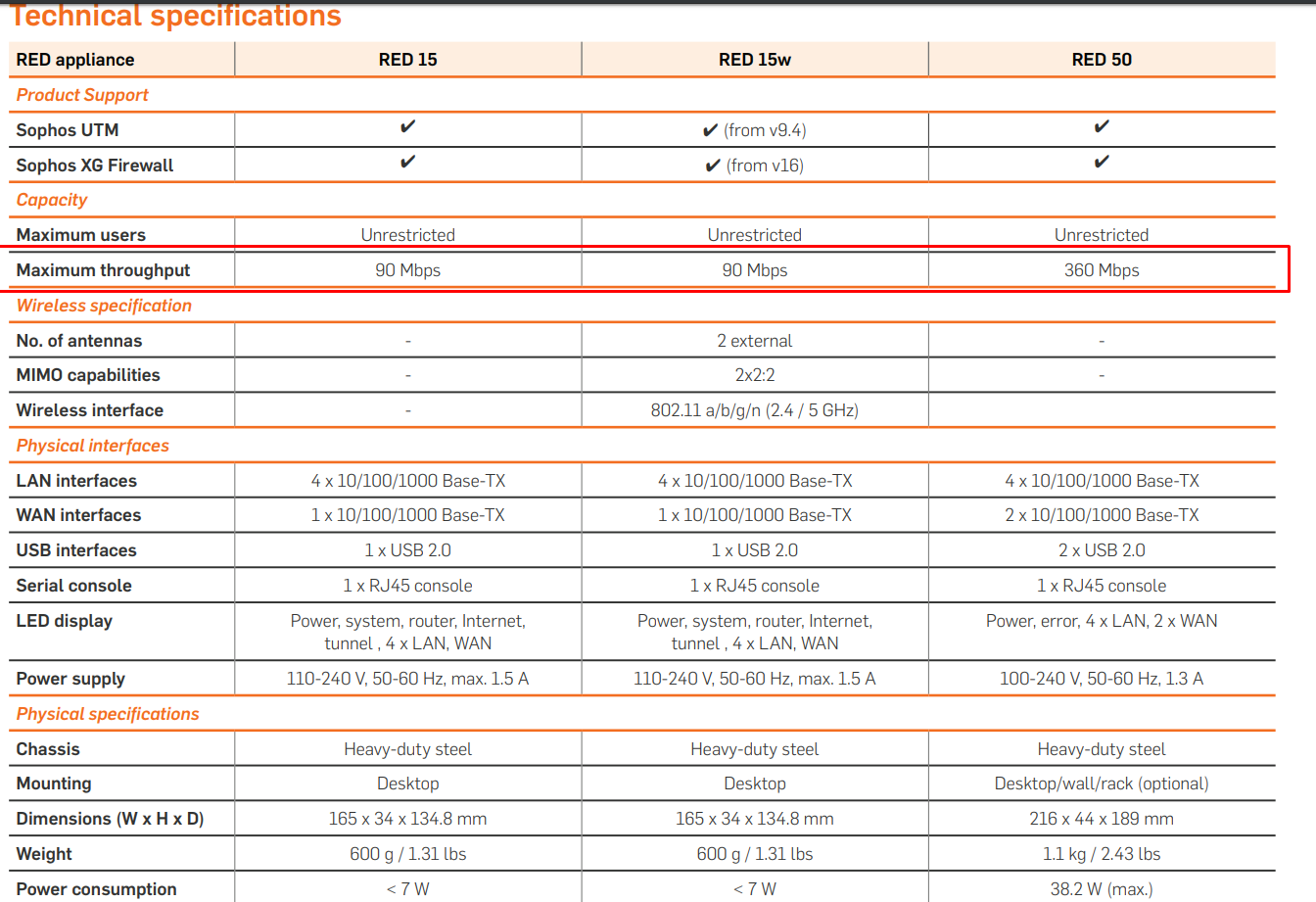 Sophos RED 50 - limited to 360MBit?