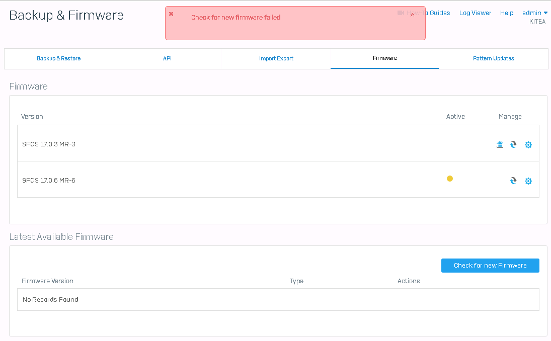 im trying to update my firewall firmware, but i got the error message "Check for new update failed".