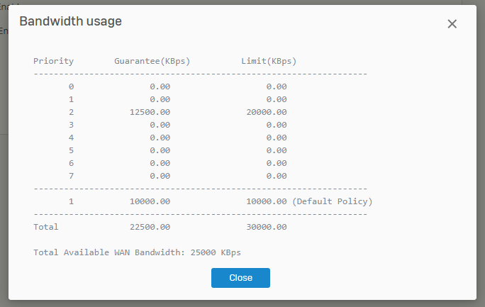 - I was doing some testing with the Enforce guarantee bandwidth value, which seems to work as advertised but even if i disable the setting, when i click on Show bandwidth usage it keeps counting the Default Policy.