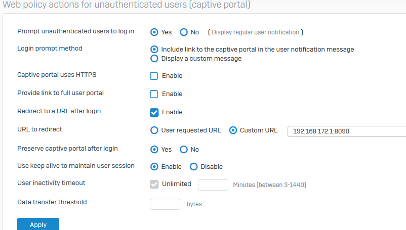 I have created WAN-LAN Polict on sophos xg-135 and enable match user and enable captive portal.