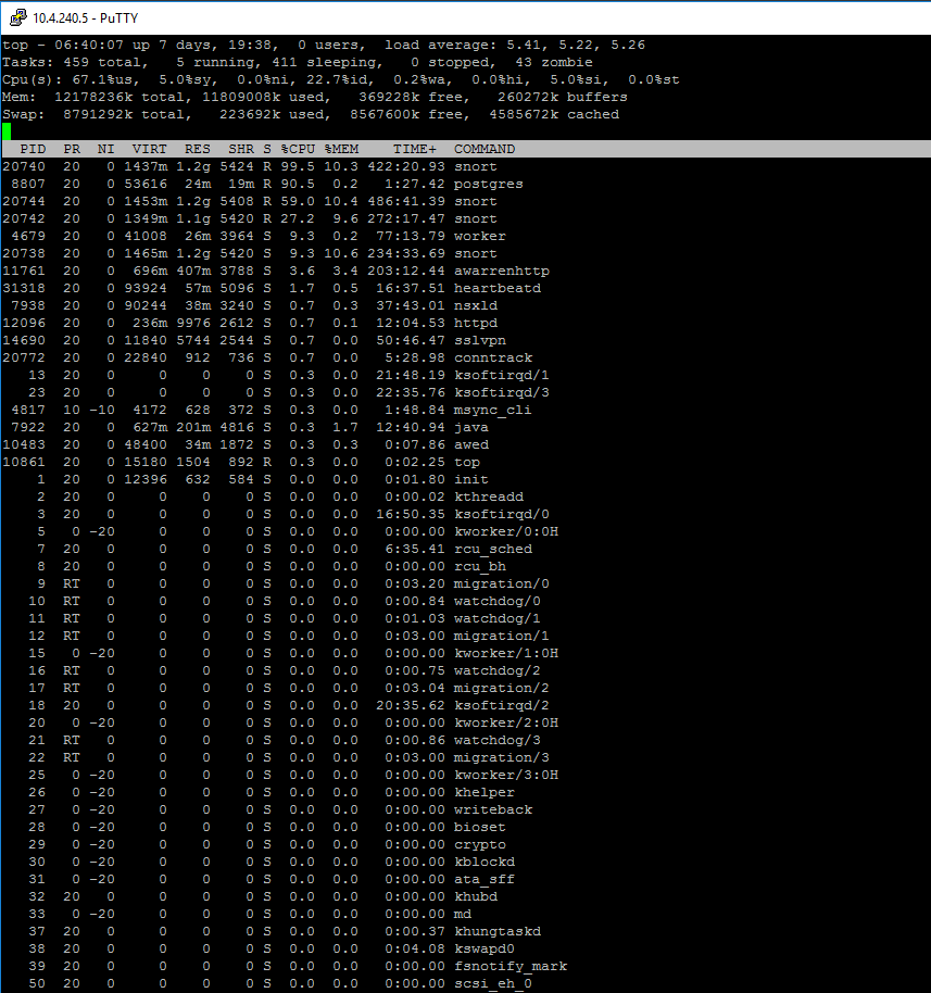 I then went back to our two internet access rules for outbound for our org, and removed HTTP scanning, immediately the CPU dropped from 70% to around 20% util. Now we have NO http scanning rules setup on any of our rules, yet I am still seeing snort cpu util is pegged.