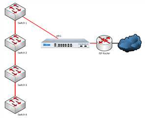 But now, all my VLAN interfaces are defined on eth1 which is connected to the switch 1 then the others switches connect to switch 1 in chain like this :
