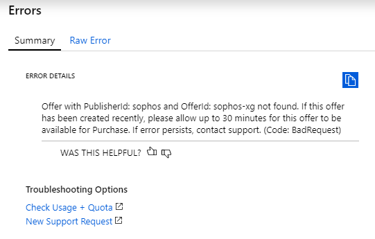 I have been trying to deploy Sophos XG on Azure - as a PAYG License. But I need getting the below error :