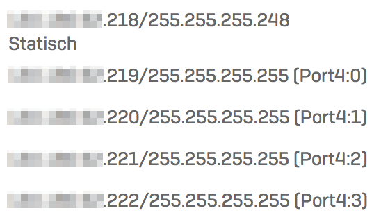 ich habe 5 IP Adressen, die ich wie folgt konfiguriert habe: