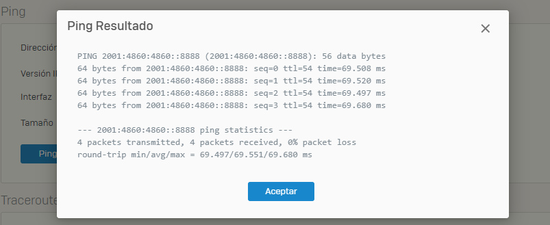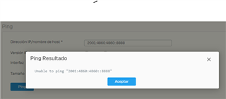 I have a problem. We are implementing IPV6 in our network, but I'm going to test with ping6. Show this issues since LAN to WAN.
