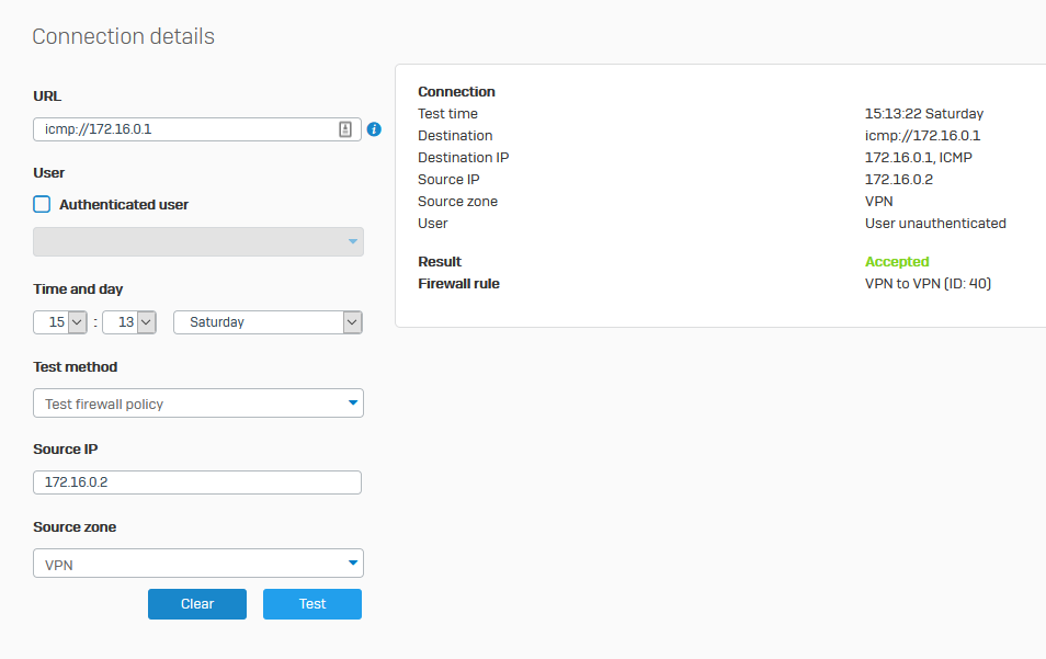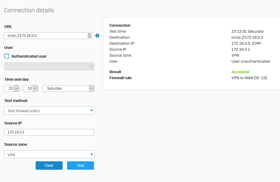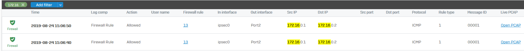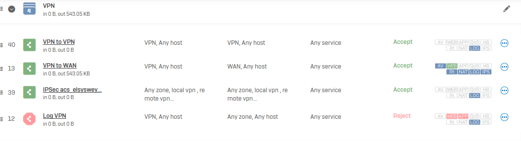 So I don't get it why the normal ping ACS -> Local Site is matched by rule 13. Why isn't this traffic part of the VPN zone how it's supposed to be.