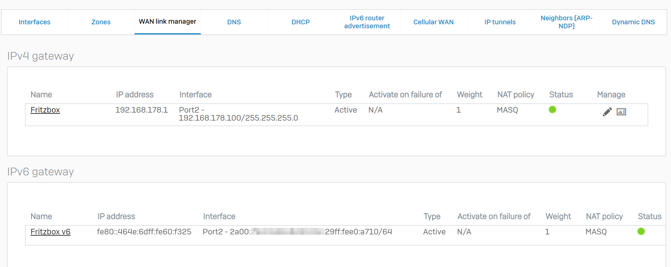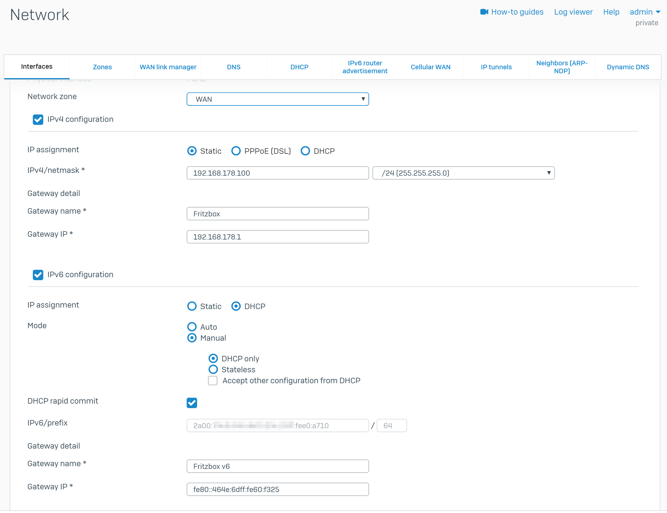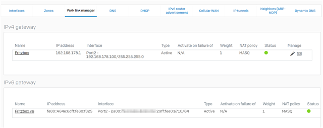 Sophos XG: IPv6 hinter Fritzbox 7590