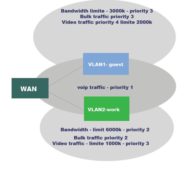 An overall bandwidth limit perhaps with priority, the issue of course is that if the overall priority of say Guest VLAN 1 is lower than Work VLAN 2, guests making calls on VLAN will have issues, if traffic is High on VLAN2.   It would be great to have all VOIP and wifi-calling have high priority across all networks, but still be able to have low priority of most other traffic on the guest VLAN (with various types of traffic within that VLAN having different bandwidth limitations)