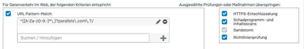 Ich habe zumindest in den Ausnahmen schon mal versucht, eine Regel für die ganzen Parallels-Dienste zu erstellen.