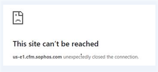 Periodically, when navigating to us-e1.cfm.sophos.com, the following error is seen: