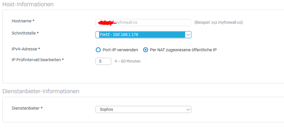the forwarding to the sophos is configured as "exposed host" cause only port forwarding did not work in my first try