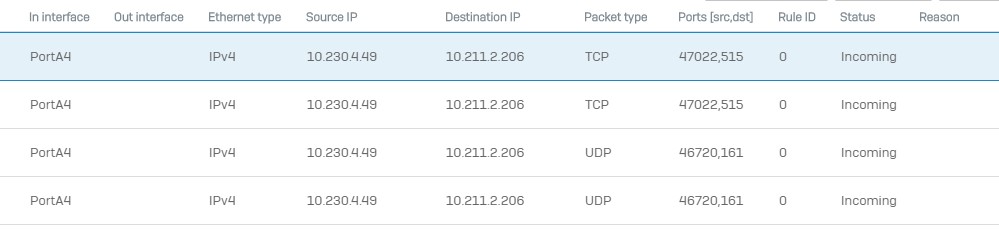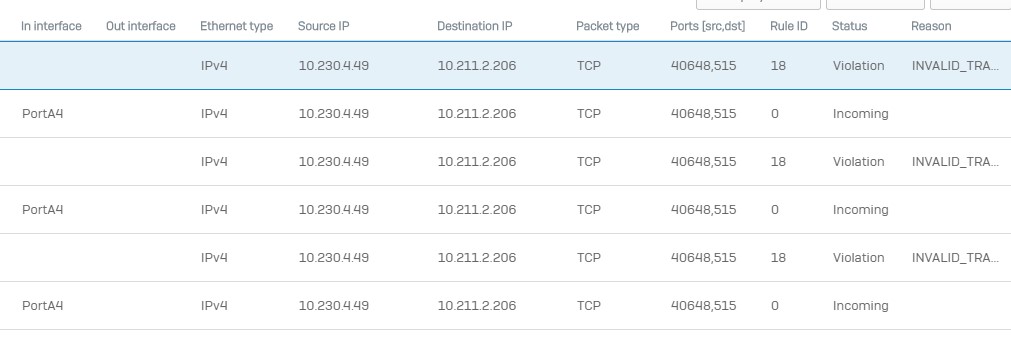 The problem is, when I enable this rule, they can't print. However, if I disable this rule, they can. I did a packet capture and when the rule is enabled, I'm getting an "INVALID_TRAFFIC" violation on rule 18, despite it seeming to match the ports and IP's I'm allowing. When I turn it off rule 0 applies and it allows everything. So two questions: Why doesn't my explicit rule work; and why does Rule 0, which I thought was a Deny All rule, allow it to work?