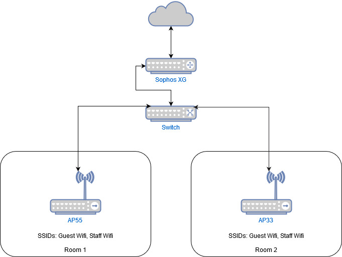 1. Putting additional access points in each room and setting them up as Guest Wifi where the old two would be set up as Staff Wifi