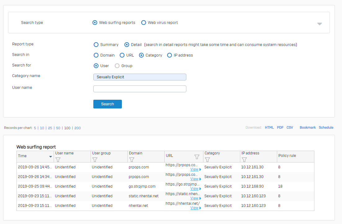 Reporting by category is easy, however theres just over 20 categories in total we need to report on. Those break down to 5 categories which would be compliant with educational standards - adult/explicit content, extremism/violence/weapons, suicide, drugs and one just for our use, unethical/hacking. Each would contain a number of appropriate categories, for instance the Adult/Explicit Content would need to contain the existing categories Adult Websites, Extreme, Nudity, Personals & Dating, Sexually Explicit and Swimwear & Lingerie.