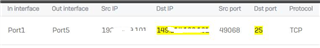 10:44:38.498842 Port1, IN: IP 192.168.9.101.49108 > 149.XXX.XXX.161.25: Flags [S], seq 1443620852, win 29200, options [mss 1460,sackOK,TS val 42774256 ecr 0,nop,wscale 7], length 0