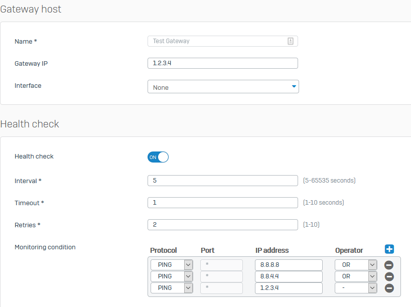 Basically the OR means, the XG will only try the first gateway.