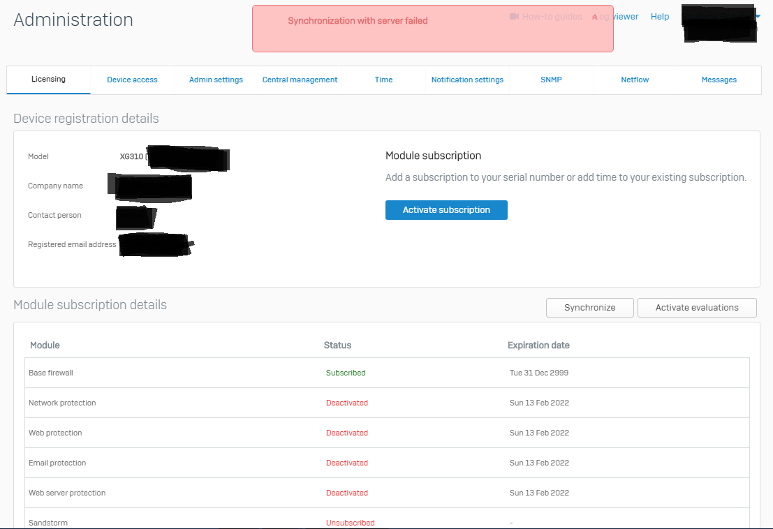 Please make sure you have an active Internet connection on the Sophos XG firewall to sync the licenses.