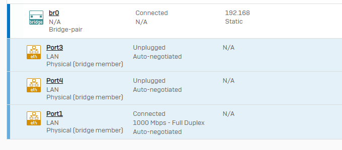My problem is that when configuring the Firewall for the first time, I configure an interface in bridge mode (br0) that contains the physical interfaces 1, 3 and 4.