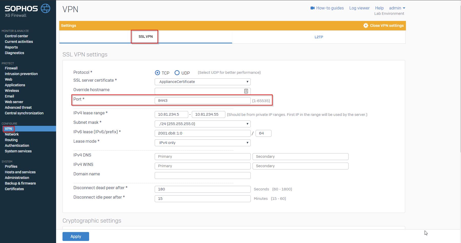 I would like to know the port used by Sophos xg for SSL remote VPN and site to site VPN (no IPsec)