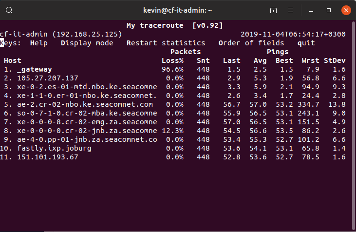 For some reason I seem to have lots of packet loss at the LAN gateway interfaces as shown below;