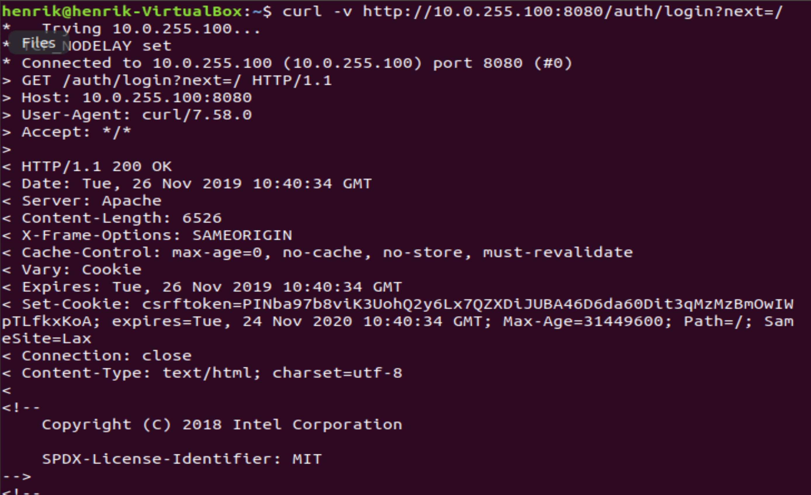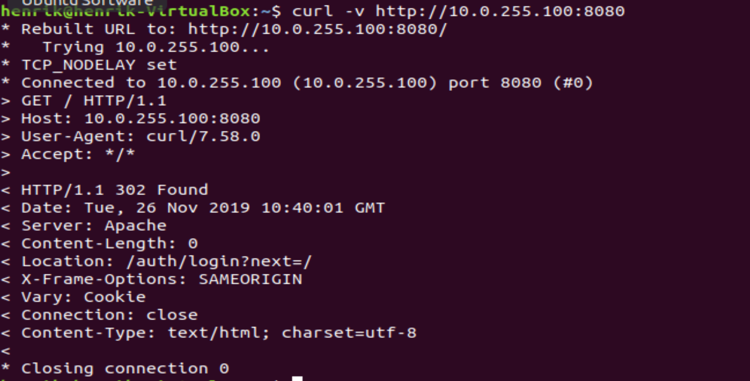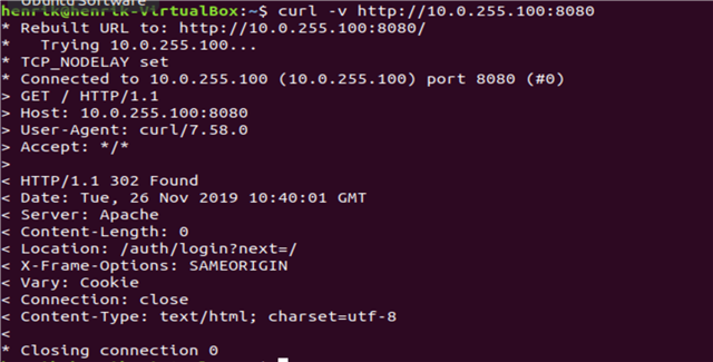 - first request (http://10.0.255.100:8080) from browser gets 302 (Found, redirect to /auth/login?next=/)