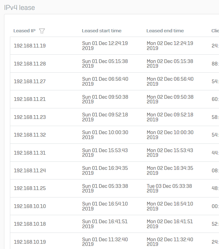 The XG DHCP Servers are also working according the IP4 Leases: