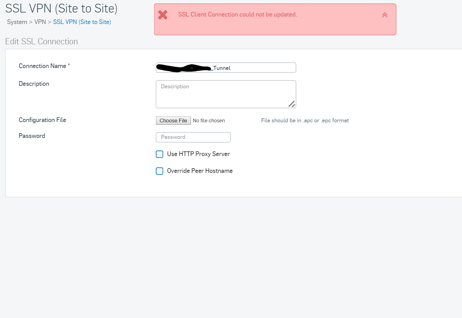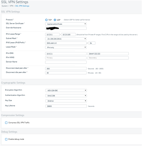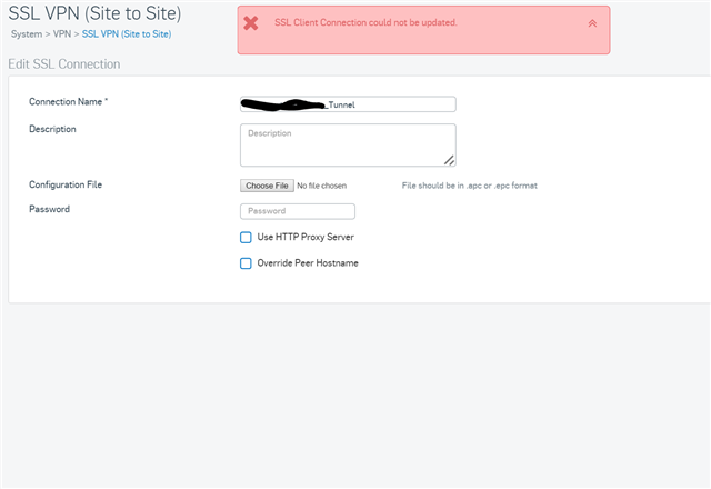 On my XG I set the Portal HTTPS port to 4433 (I read in someone's guide that this is where the XG pulls the port for the site-to-site ssl from). I also set my SSL settings to UDP, gave a separate IPv4 Lease Range than the SSL pool on the UTM or either of the sites. Also the Cryptographic Settings on both the XG and UTM are the same. Compression is off on both devices. I created a new SSL site-to-site connection, gave it a name, upload the apc file and when I click the button it waits for a few seconds then says ssl client connection could not be updated. Nothing is dumped into the log, even with debug enabled (or at least I can't find it in the log, I may be looking in the wrong place.)