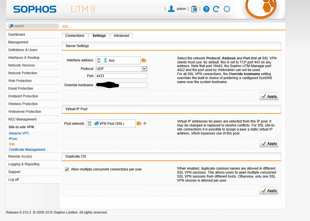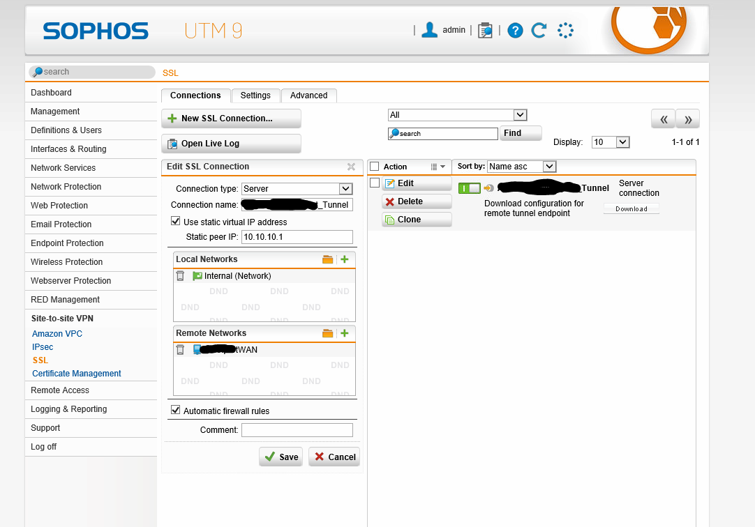 XG Firewall SSL VPN Site to Site to UTM 9