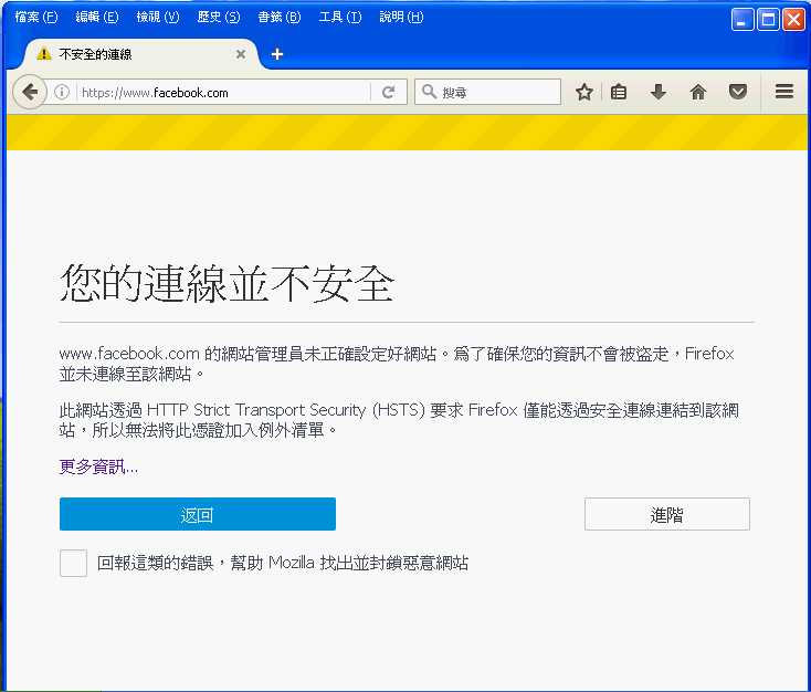 • Firefox 49.0.2 on MAC: HSTS error and you cannot continue
