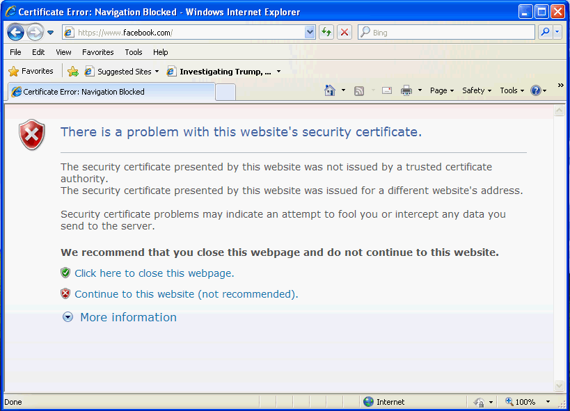 BUT if the user requests a httpS website the captive portal is not displayed. An error message comes up telling me that the certificate is invalid.