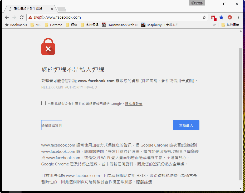 • Google Chrome 54.0.2840.71 on Windows: HSTS error and you cannot continue