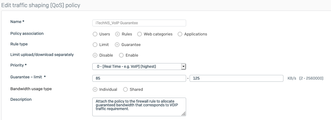 in Sophos Traffic Shaping (QoS) Settings the Total Available WAN Bandwidth  is set to be in KBps  which i guess it is wrong and it should be in kbps